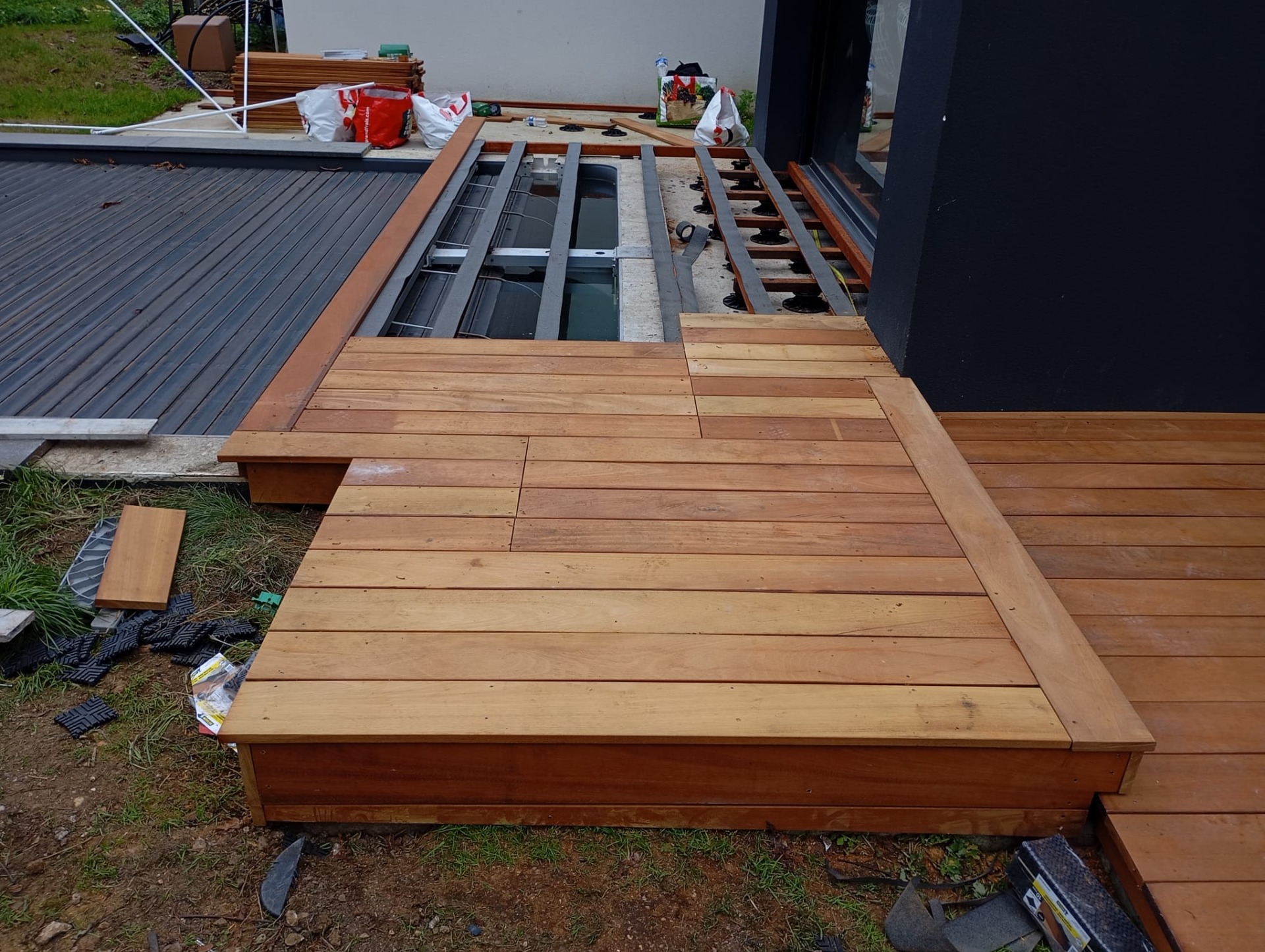 La qualité de la pose est déterminante pour la longévité de la terrasse. Une installation professionnelle garantit une structure solide, un alignement précis et une finition soignée.
